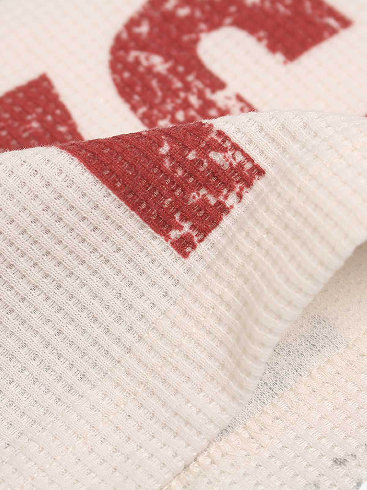 Waffle Knit Graphic Print Crewneck Sweatshirt